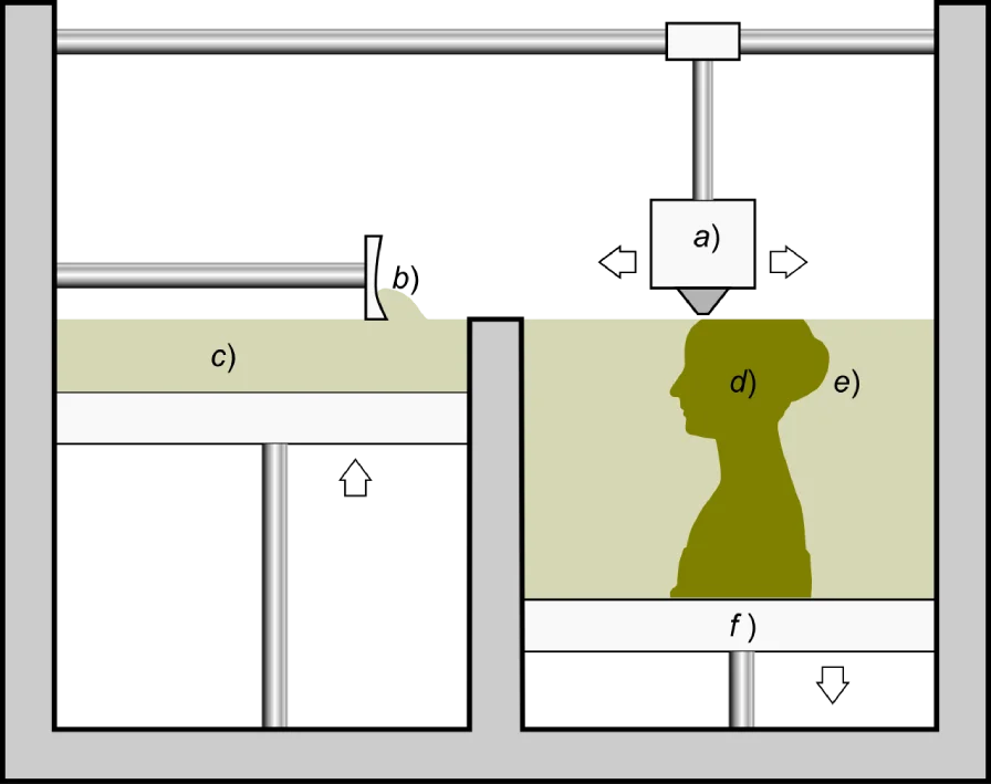 A view of the H350 printer building a part layer in the powder bed fusion process.