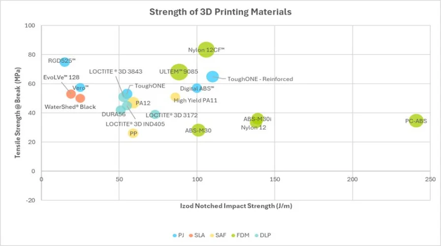 It would be nice if there were a single, universal metric that described material strength or durability, and you could simply choose the “most durable" 3D printing material for your application. However, the reality is a lot more complex: