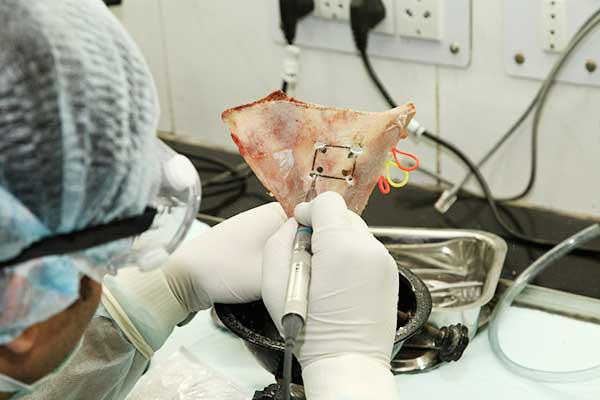 Physical training models for ex vivo study on animal tissue like sheep’s head and scapula for drilling practice.